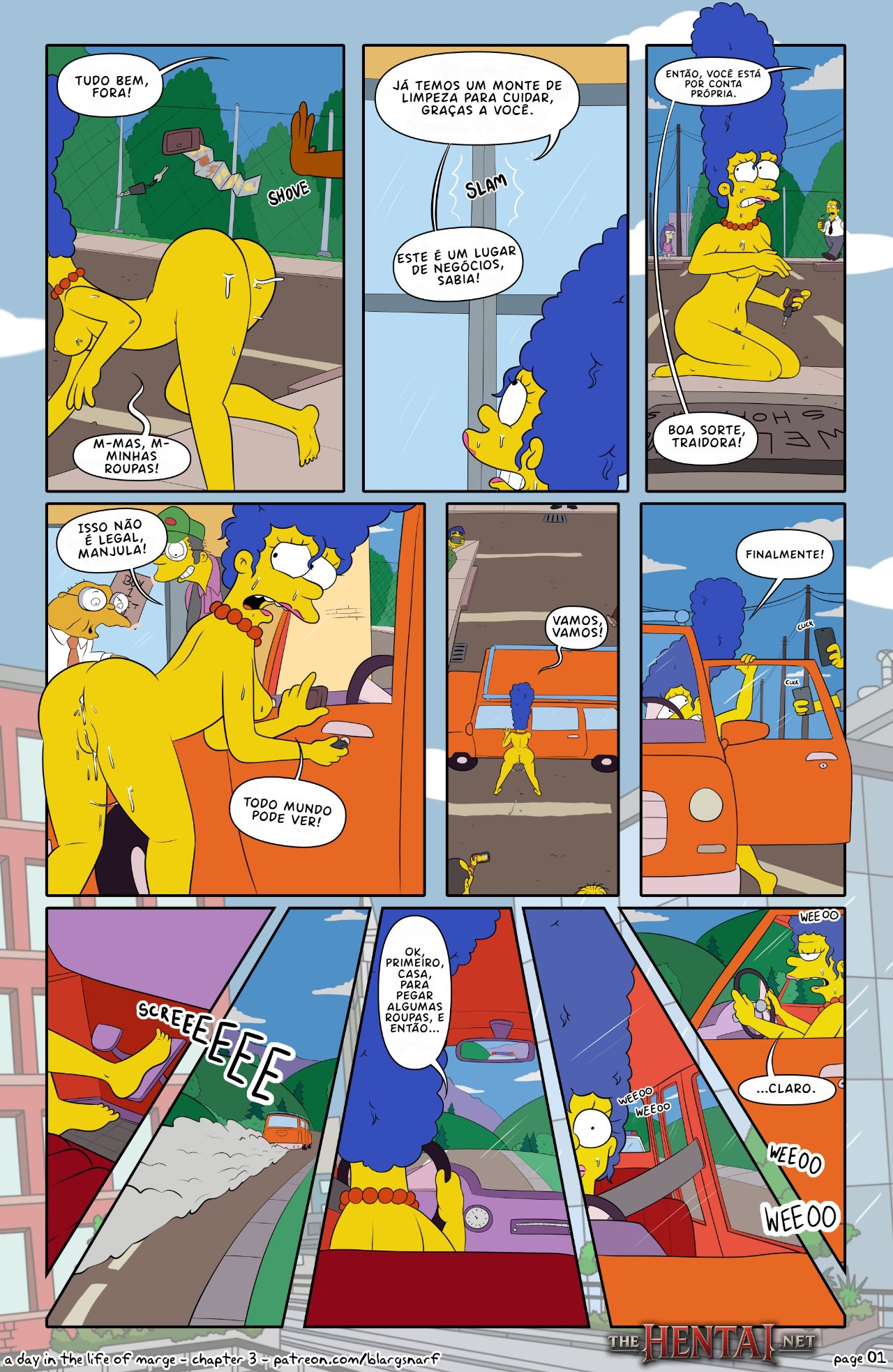 Exclusividade The Hentai: Após Marge transar com Apu, ela vê-se pelada no estacionamento, tentando entrar em seu carro. Com isso, ela é detida pelos policiais por estar pelada em público, assim ela é levada para a delegacia e, para seu azar, todos os policiais estavam sedentos para uma transa e seu corpo seria algo que eles estavam procurando.
