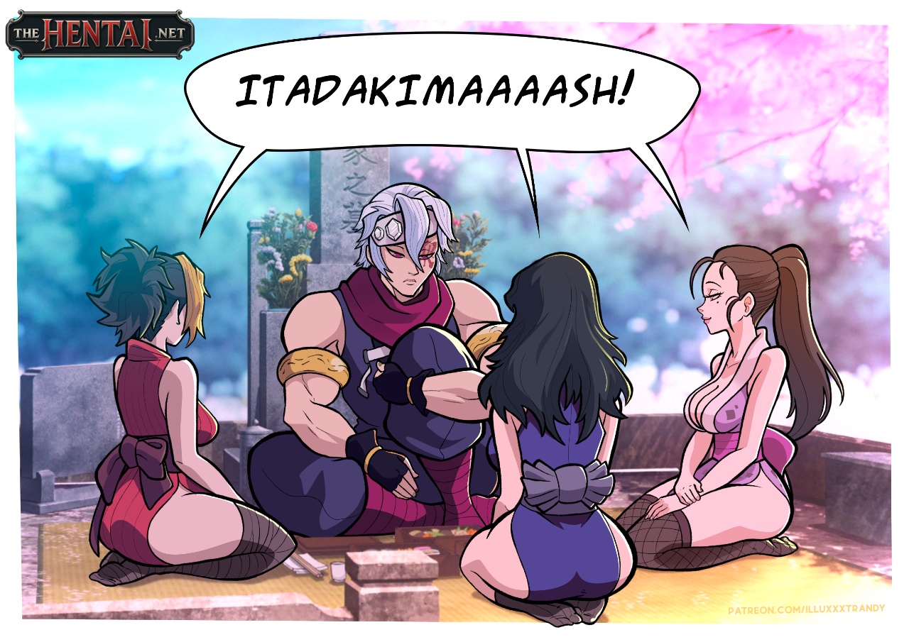 Exclusividade The Hentai: O mestre Tengen está com as suas três esposas num canto de sua casa, muito abalado e quieto em luto e com saudade de seus familiares. Uma de suas esposas se oferece para fazê-lo esquecer dessa tristeza. Ele brinca dizendo que é o pior lugar possível para ela falar isso, pois logo atrás dele está o túmulo de seus familiares. Mesmo assim, ele atende às necessidades e à ideia das garotas de satisfazê-lo sexualmente e assim deixa elas fazerem um boquete nele. Porém, elas acabam competindo nisso.