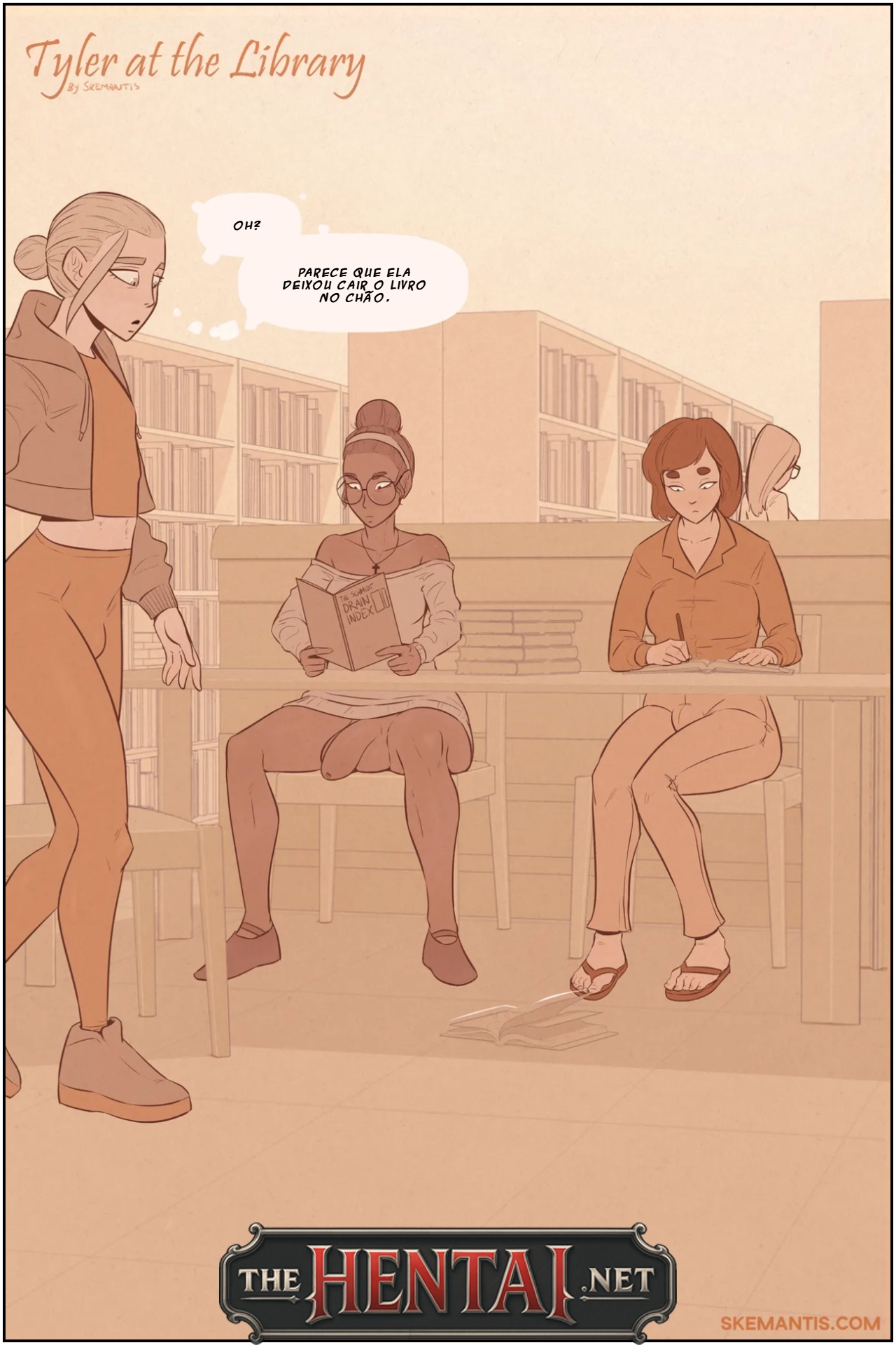 Exclusividade The Hentai: Tyler está andando na biblioteca, quando de repente avista um livro jogado no chão. Ele se abaixa para pegar e colocar em cima da mesa para que quem quer que seja a dona possa pegá-lo de volta. Ao ler de relance as páginas, ele percebe que aquilo era um livro adulto, e ao olhar para cima, percebe que sua colega está sem calça, apenas com uma camisa larga para poder esconder seu corpo. Ele fica hipnotizado por aquele pênis negro, grande e delicioso em sua frente, seus instintos atacam e ele não pode se controlar: Tyler precisa provar aquilo imediatamente!